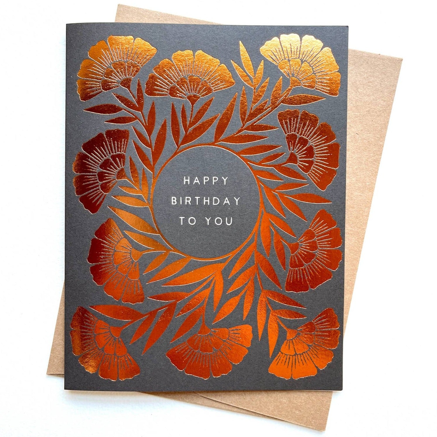 Happy Birthday Foil or Block Printed Floral Card