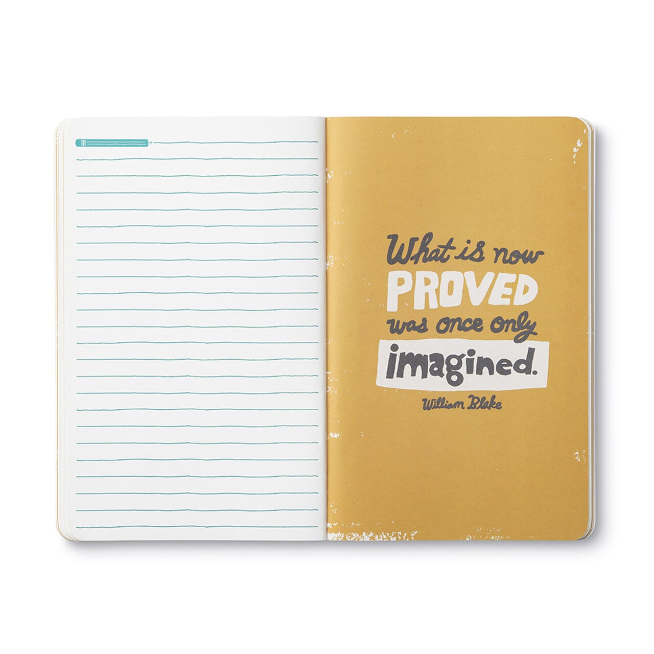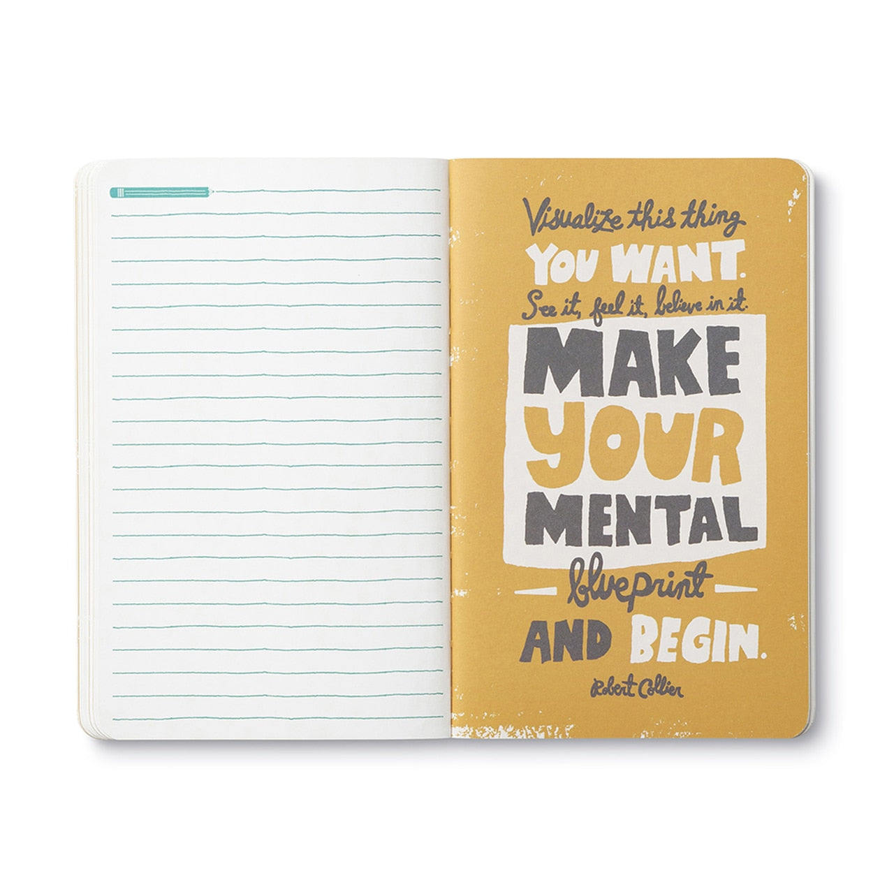 The Write Now Journal line features beautiful design, modern typography, bold sentiments, striking artwork, and periodic typeset quotations—with plenty of lined pages to capture the day’s thoughts, musing, and prose.