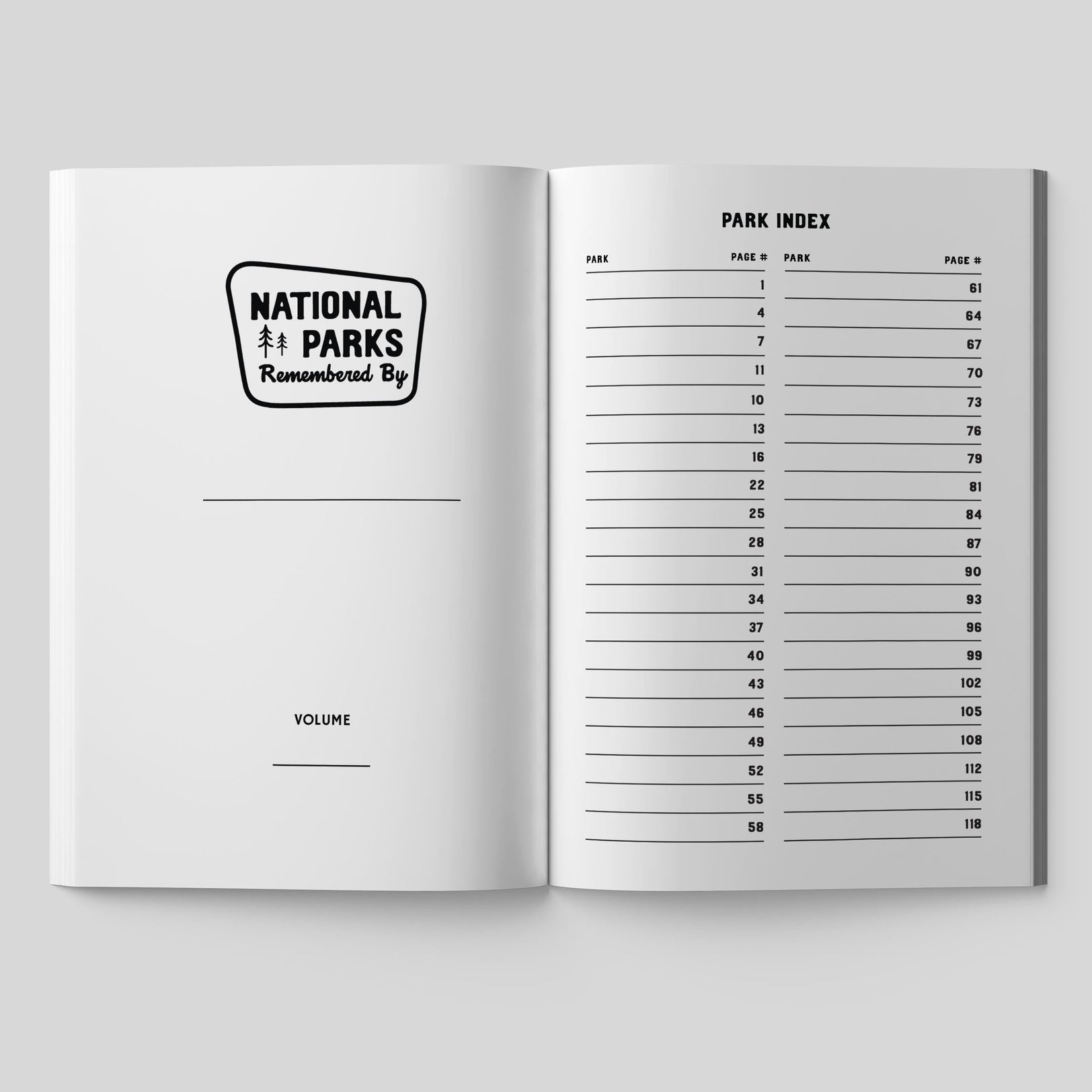 Capture every remarkable moment of your National Park adventures. This guided travel journal and logbook transforms your park visits into lasting memories you'll treasure for years to come. Product Details: • Track up to 40 National Park visits. Three pages per park • Size: 6" x 9" • 120 pages • High-quality journaling paper • Matte-finish soft paperback cover Inside Each Visit: Document essential details and experiences across three pages. Record viewpoints, wildlife sightings, and trail discoveries. Rate your experience from scenic vistas to accessibility. Preserve first impressions and memorable moments. Include photos and build your passport stamp collection.