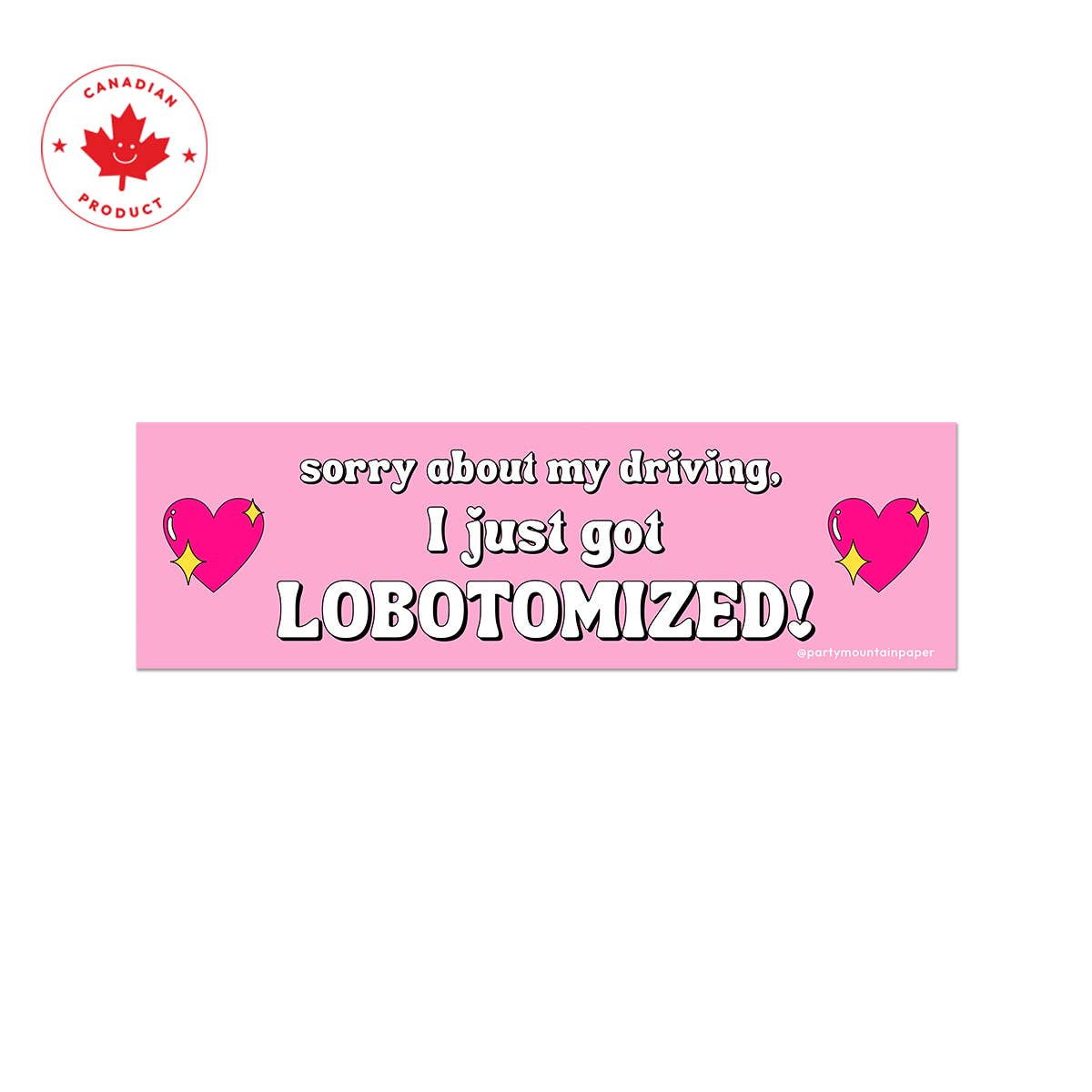 Sorry About My Driving Just Got Lobotomized Bumper Sticker